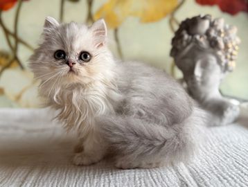 Gracie x Gatsby baby silver chinchilla boy. Singleton. Spoiled rotten, loves to be carried around like a baby. Likes to sleep on a chest at night. Born 7/28