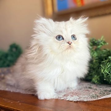 Gracie x Gatsby baby silver chinchilla boy. Singleton. Spoiled rotten, loves to be carried around like a baby. Likes to sleep on a chest at night.
